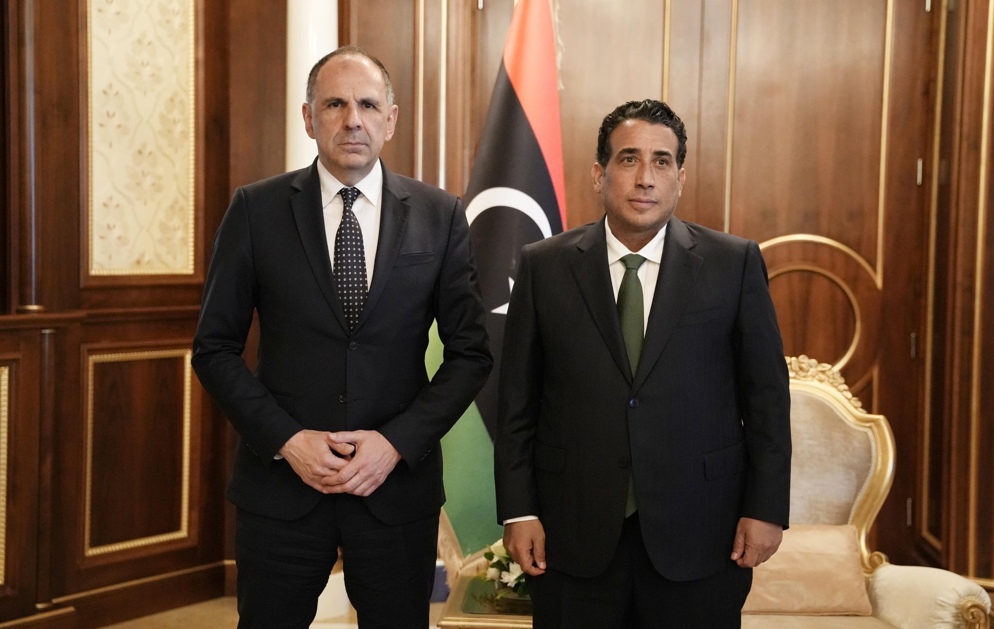 بحث رئيس المجلس الرئاسي، محمد المنفي مع وزير خارجية اليونان، جيورجوس غيرابتريتيس مستجدات الأوضاع السياسية والاقتصادية في ليبيا، إلى جانب سبل تطوير العلاقات الثنائية وتوسيعها في مختلف المجالات، في إطار الروابط التاريخية وعلاقات حسن الجوار، بما يخدم المصالح المشتركة ويعزز الأمن والاستقرار في منطقة البحر المتوسط، على أساس الاحترام المتبادل.